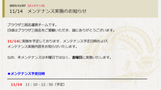 ブラ三からのお知らせ w1+2鯖46期は今日(11月20日)11時10分で終了です