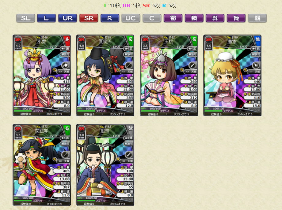 ※レアリティSR以下の武将のスキルレベルは初期所持スキルLVの状態で排出されます。