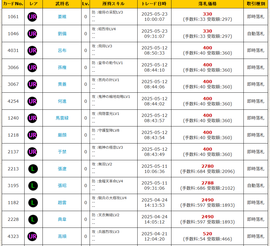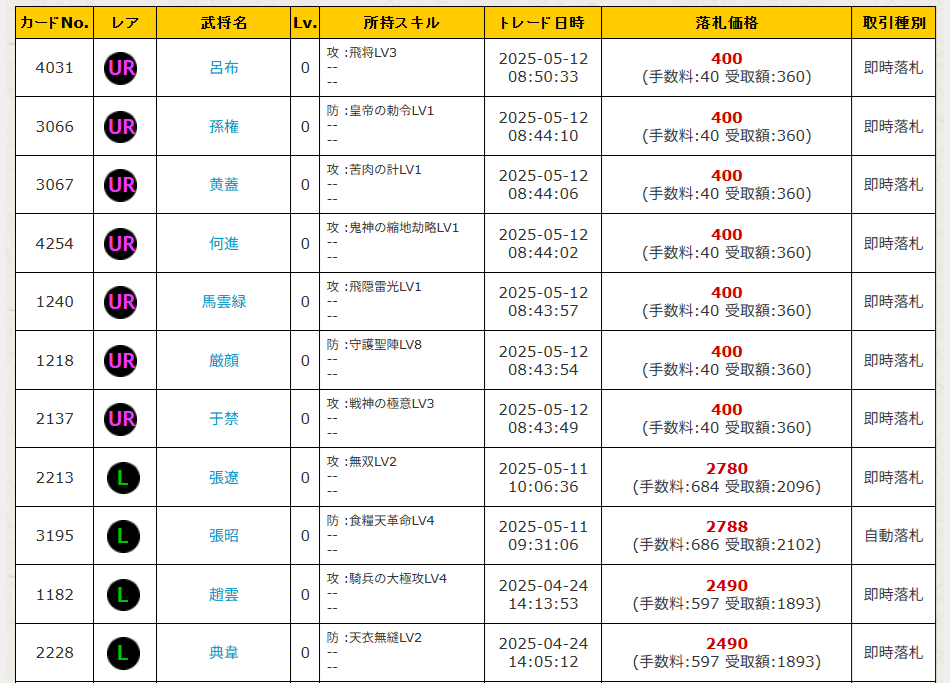 私の場合、チケットダスで引いたURやLの売却がほとんどですからね。