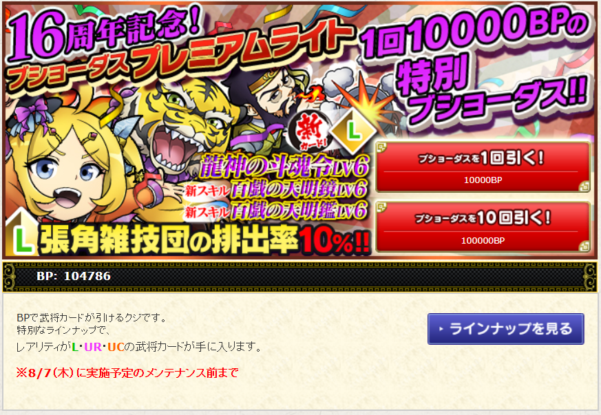 16周年期間限定ログインボーナスのおかげでBPが貯まる貯まる。