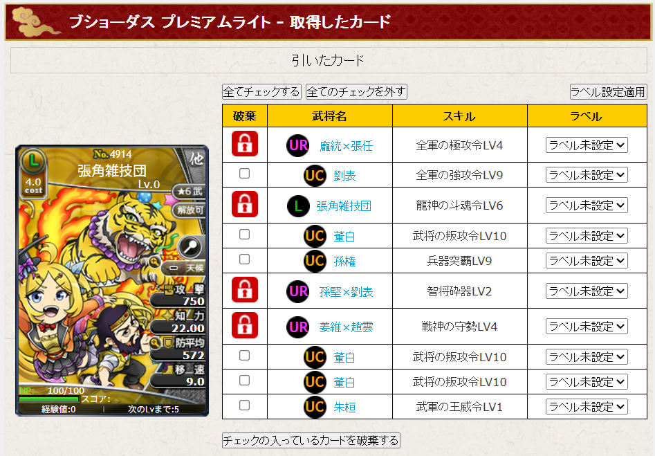 すぐに換金できるL張角雑技団引かせておくれ(贅沢)。