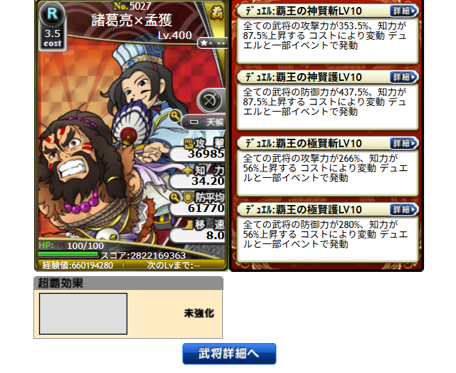 こちらは防御を捨てて攻知移に振ってるタイプ。