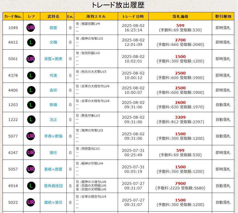 育てたカードは1枚も無く、すべてチケットダスとかで引いた要らないカードを売却しております。