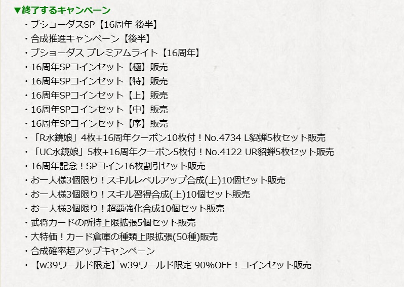 購入予定でまだ勝ってないモノがある方やSP16周年後半をもっと引きたい方は忘れずに。