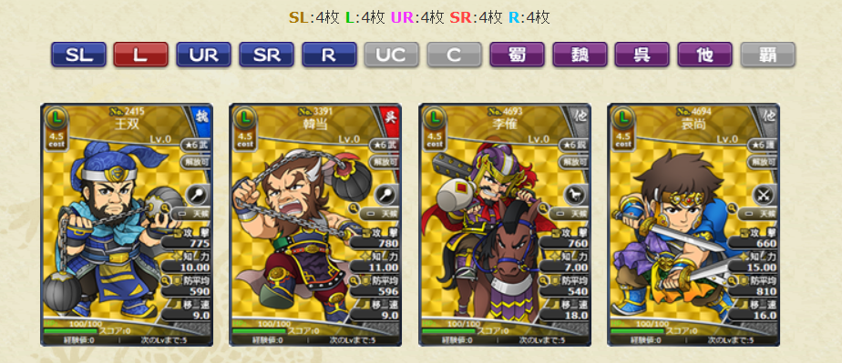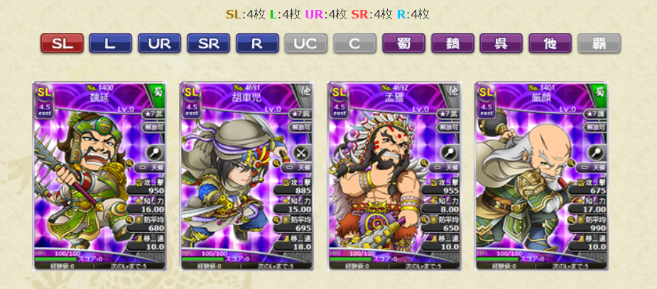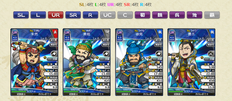またUR以上のカードは副将スロットがフル開放で排出となっており嬉しい仕様ですね。