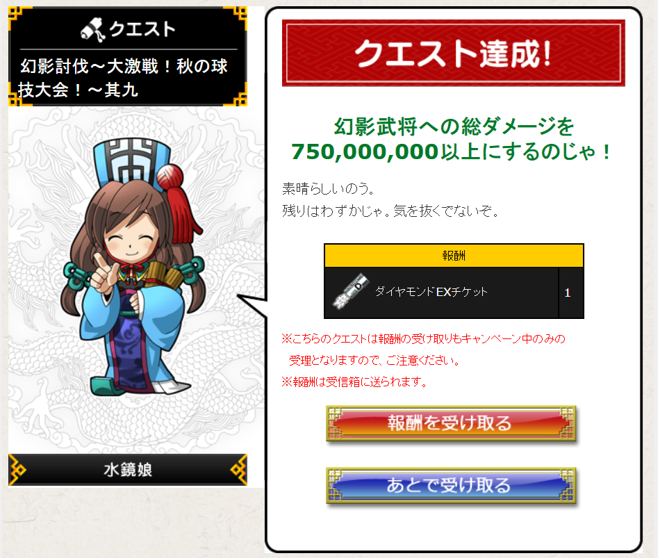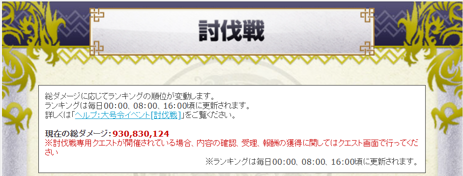総ダメージが7.5億を超えたのでこのクエをクリア。