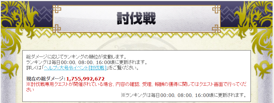あとメンテ後に討伐戦のランキング報酬が配付されました。