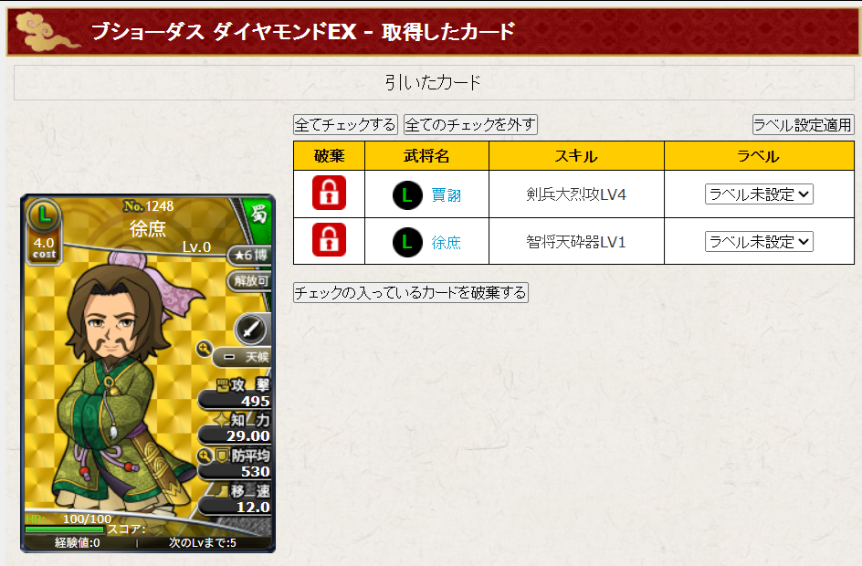 討伐戦で引いたチケットで出たカード達。