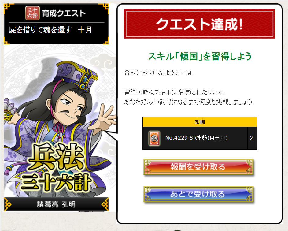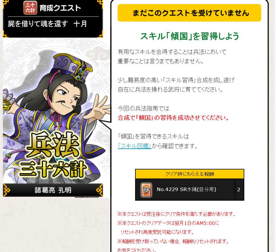 今月もSR水鏡(自分用)2枚ゲットするために付与系の育成クエにチャレンジです。