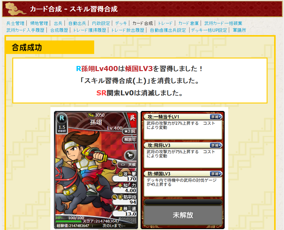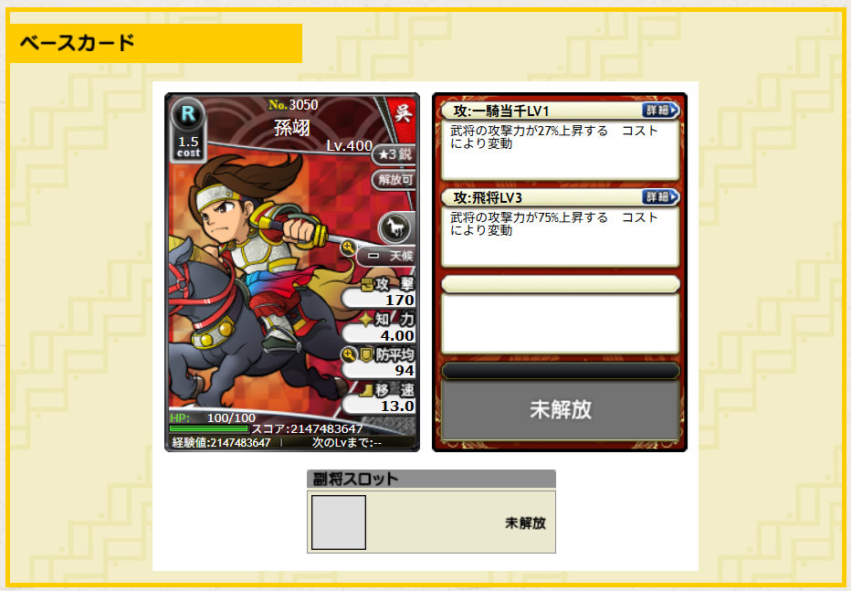 以前飛将付与で使った一騎当千持ちのR孫翊さんがあったので。