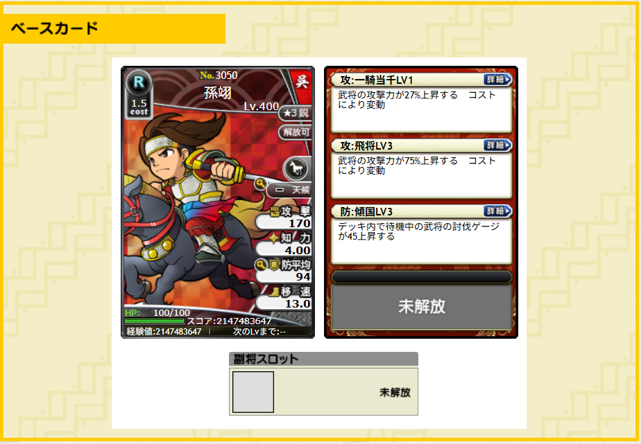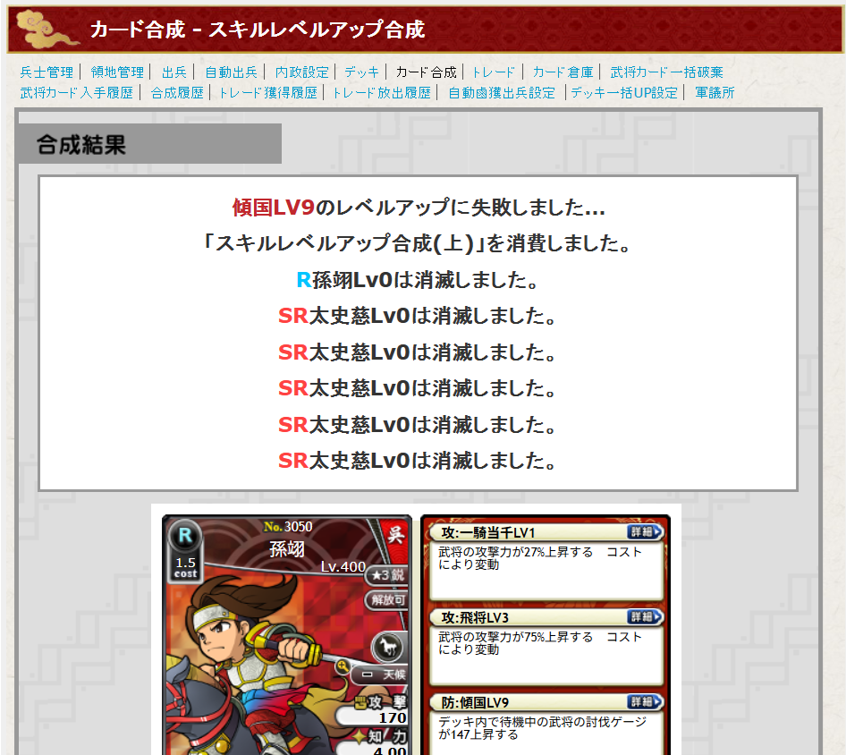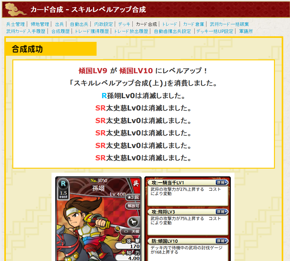 傾国は遠距離TP稼ぎで使うので、スキルレベルが高い傾国カードは何枚あっても良いですからね。