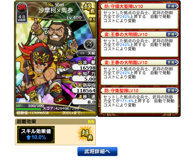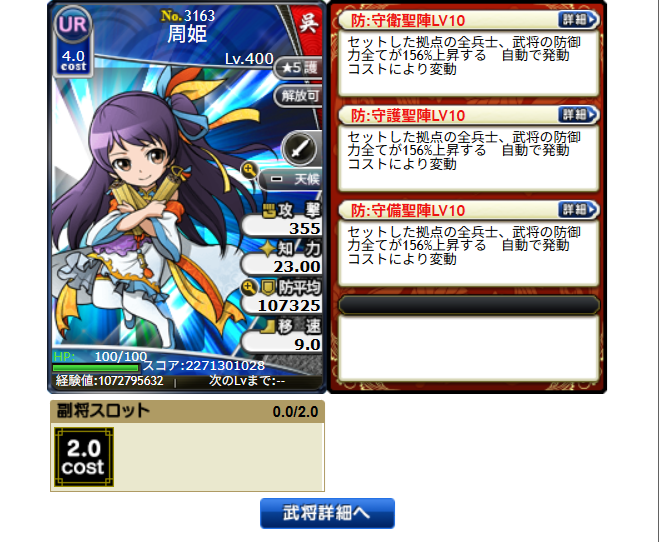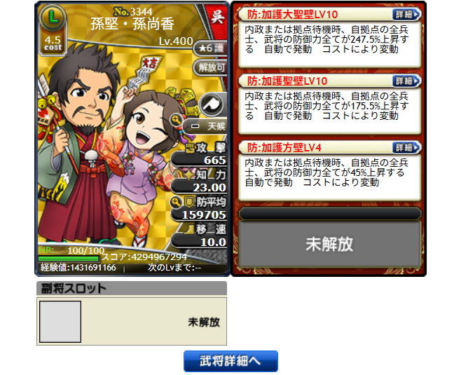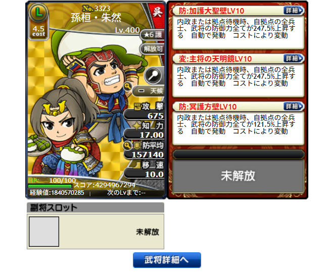 スキルがレベル10になってないモノもいますし、副将セットしていないカード、さらに副将開放すらしてないカードも。