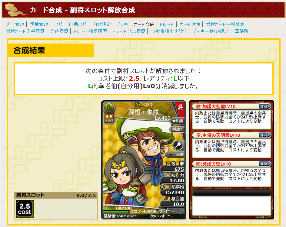 南蛮太守の面々の記事作って副将開放してないことに気付いた私。
