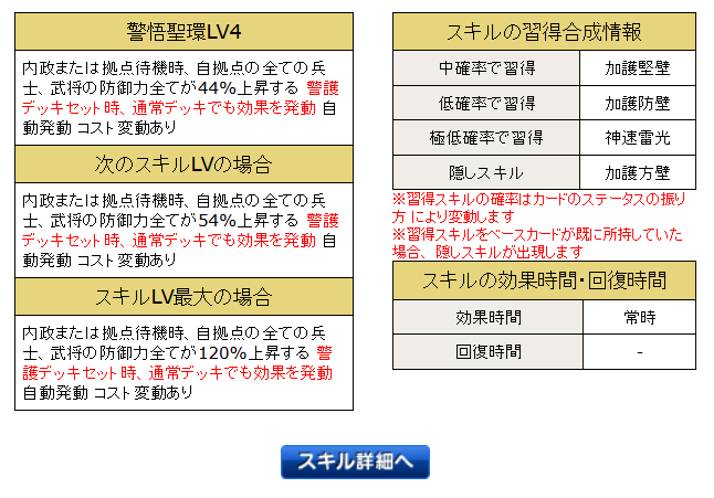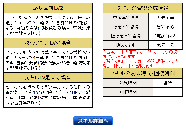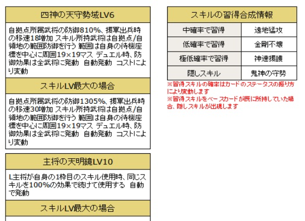 スキルレベル10で兵士の攻撃力480%上昇、武将の攻撃力800%上昇は良い。