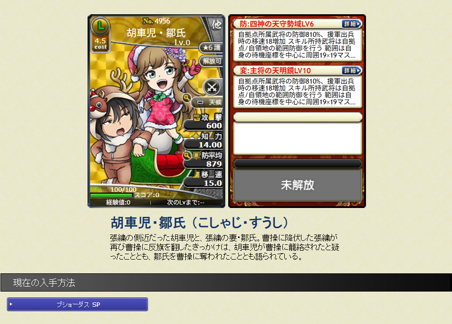 | L胡車児・鄒氏 | 4.5 | 護 | 四神の天守勢域・明鏡 |