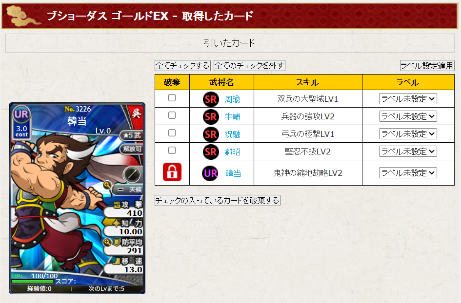 あとこれだけだと記事が寂しいので、アイテム庫にあったゴルチケ5枚使ってダス引きました。