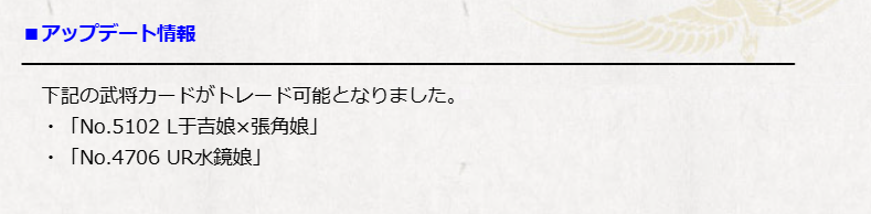 昨日のメンテでトレード出品できるようになったカードが公表されました。