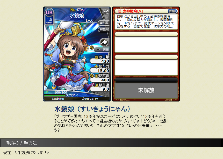 2022年に13周年期間限定ログインボーナスで配布され、同時に13周年プレミアムライトで排出されたカードです。