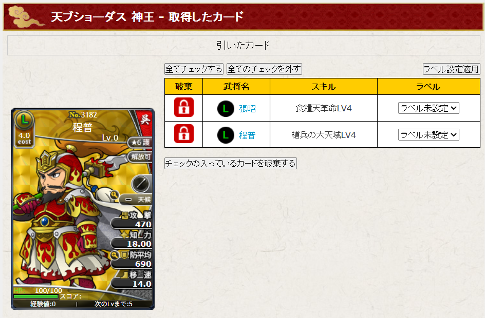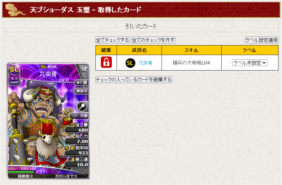 すぐに使った結果がこちら(今回はプラチナ、神王、ダイヤモンド、玉璽のみ)。