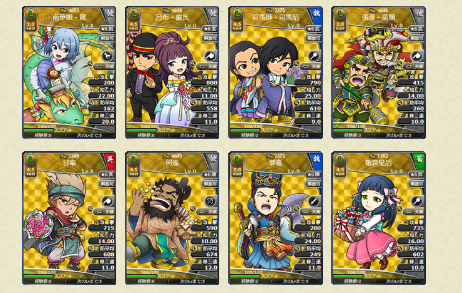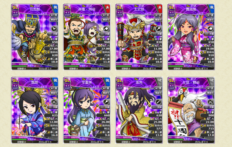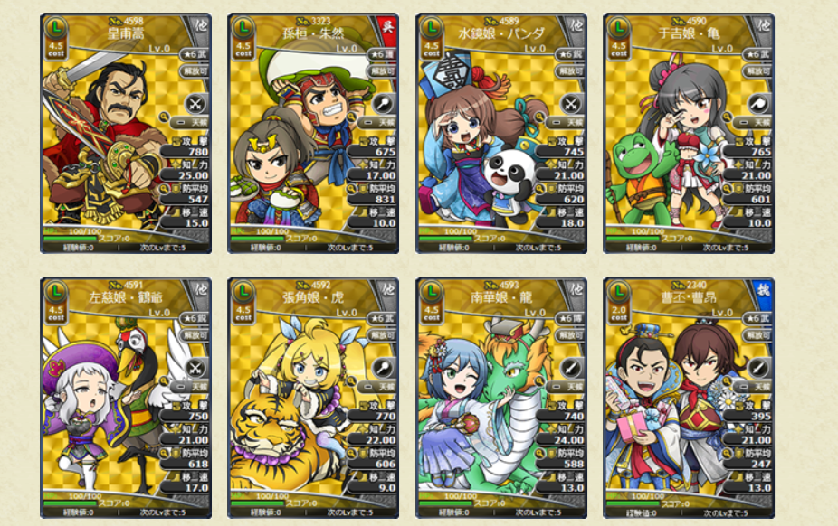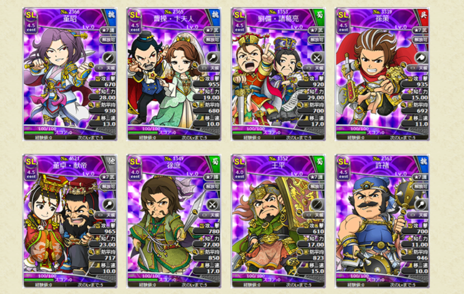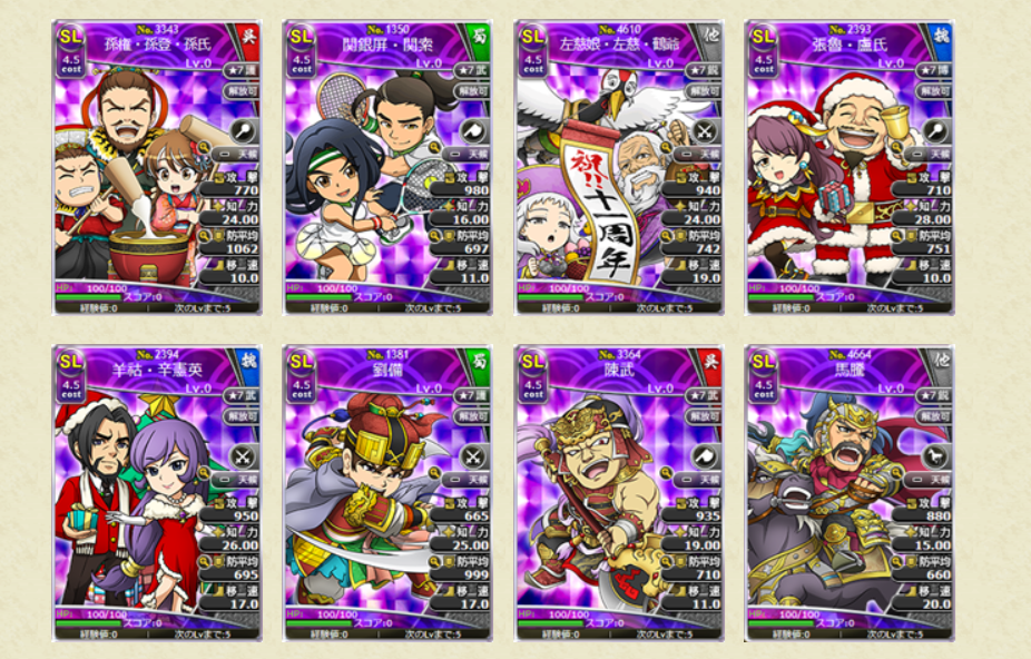 レアリティSL、Lの武将カードはスキルがLV10の状態で排出されます!