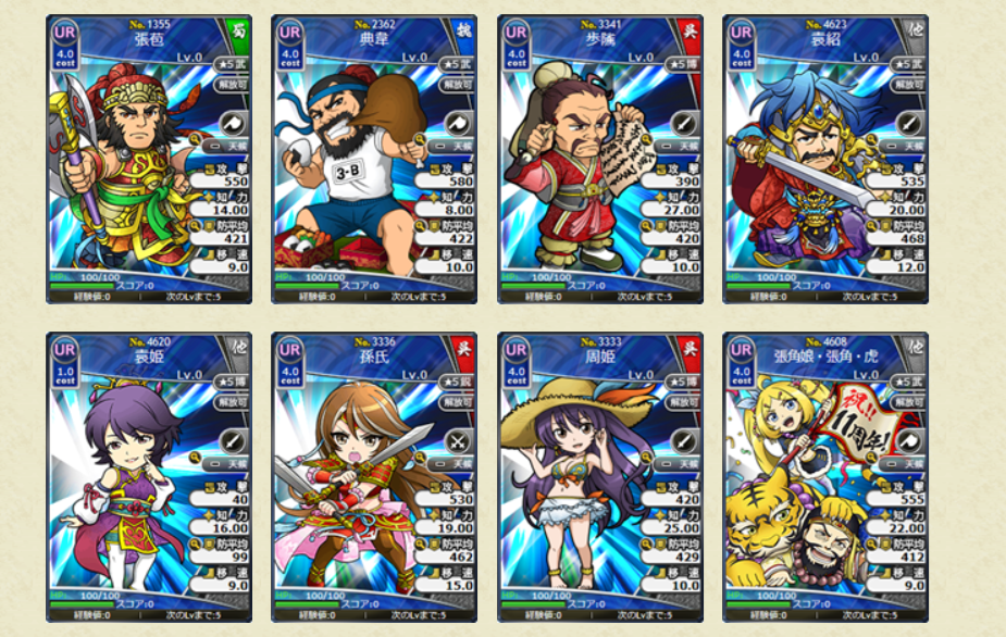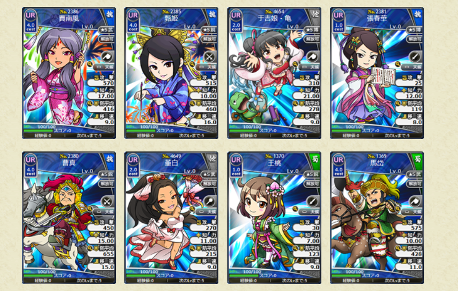 ※レアリティUR以下の武将のスキルレベルは初期所持スキルLVの状態で排出されます。