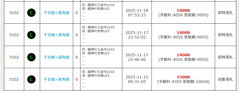 1万4000TP~1万5000TPぐらいが相場となっているL于吉娘×張角娘。