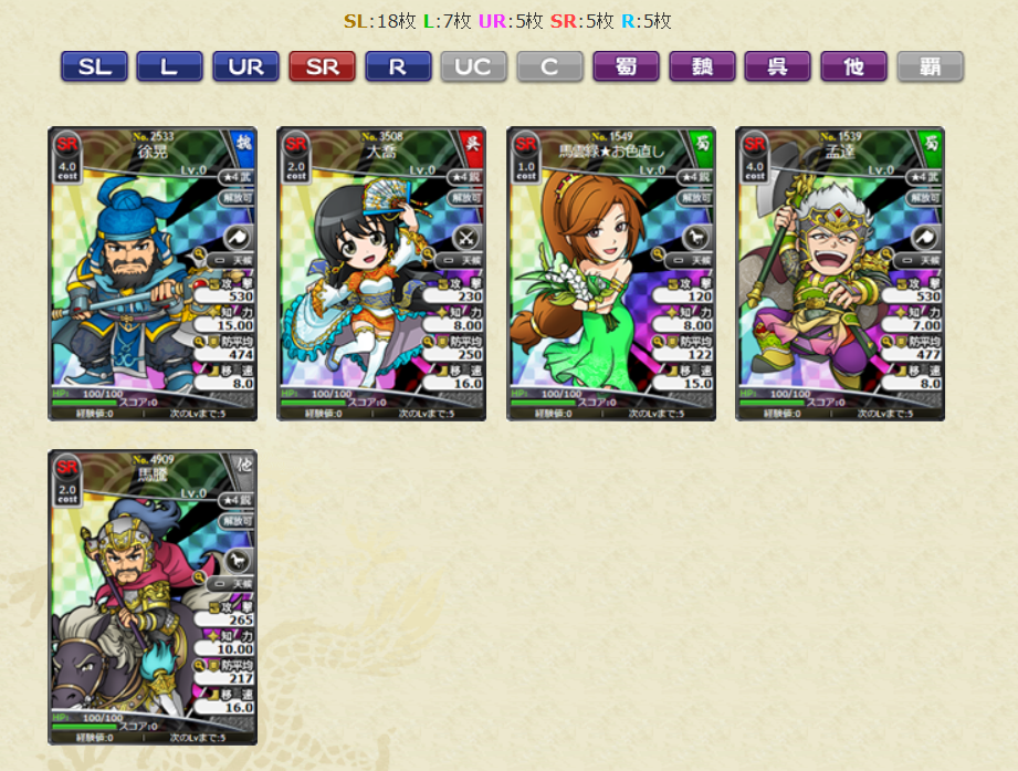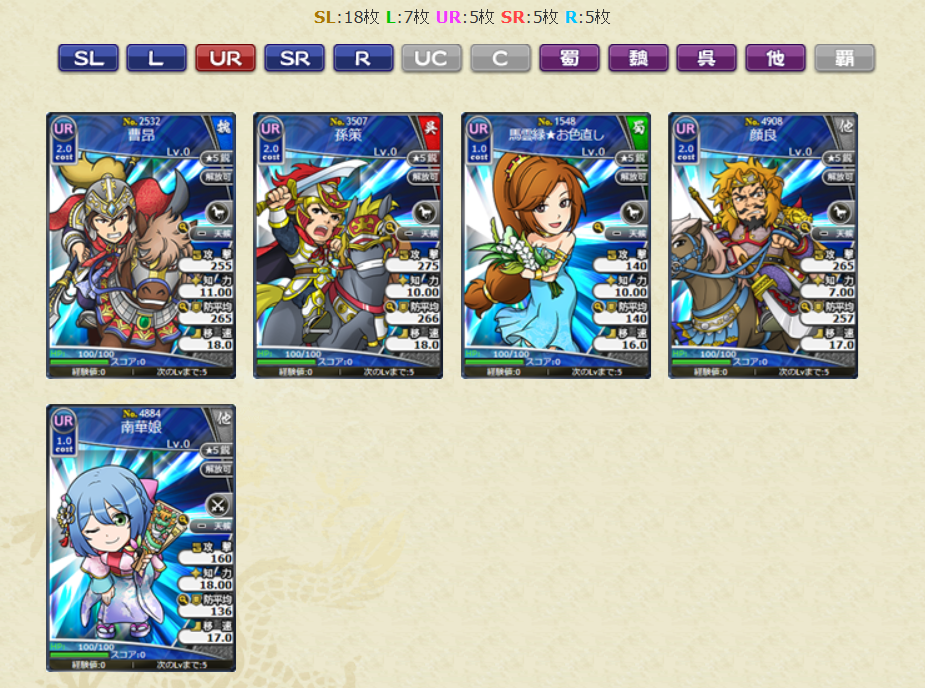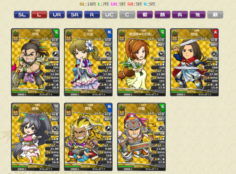 ・No.4925 SL張角娘 娘将の帝錬鏡LV10 1枚 ・No.4924 SL于吉娘 娘将の帝錬鏡LV10 1枚 ・No.3488 SL歩夫人 呉将の帝錬鏡LV10 1枚 ・No.4877 SL于吉 群将の帝錬鏡LV10 1枚 ・No.1518 SL孟達 蜀将の帝錬鏡LV10 1枚 ・No.2525 SL鮑信 魏将の帝錬鏡LV10 1枚 ・No.3484 SL呂蒙 呉将の帝錬鏡LV10 1枚 ・No.4882 SL王異 群将の帝錬鏡LV10 1枚 ・No.2507 SL羊祜 魏将の帝錬鏡LV10 1枚 ・No.1538 SL黄月英 蜀将の帝錬鏡LV10 1枚 ・2025クーポン 10枚 ブラウザ三国志のゲーム画面より引用