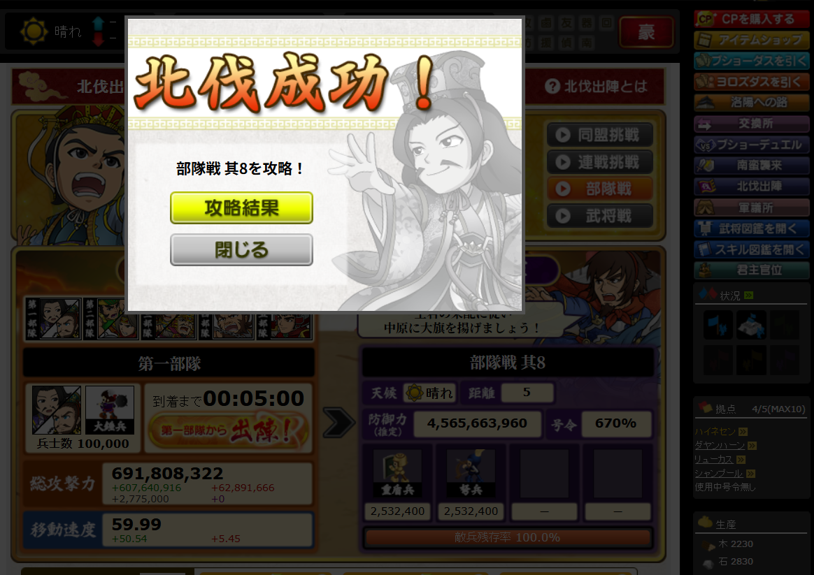 部隊戦其の8をクリアして経験値とスコアを約2100万ゲットです。