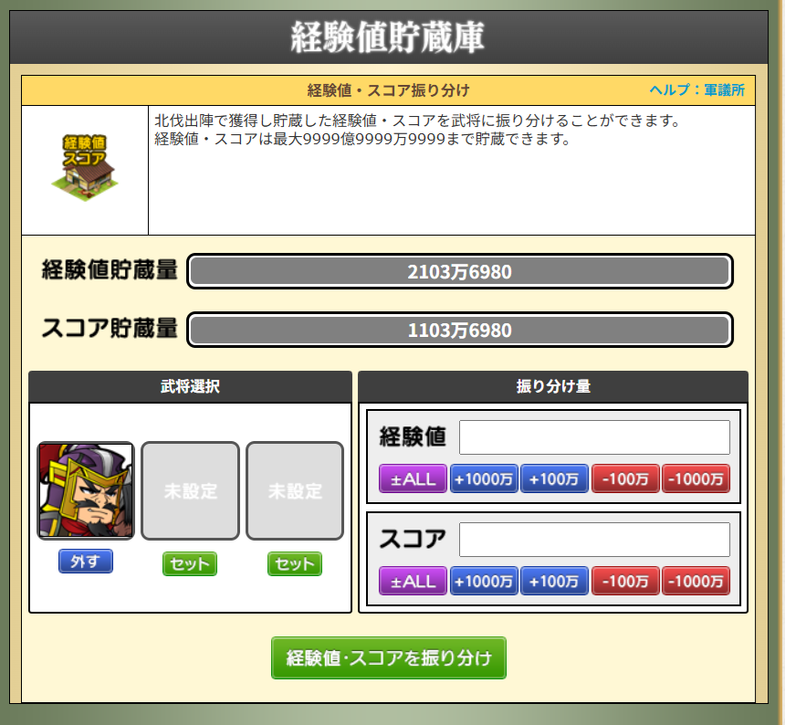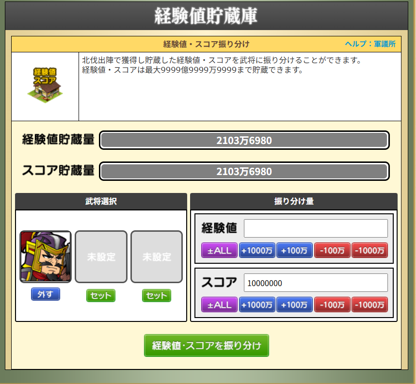 北伐でゲットした経験値を貯蔵し、レベル上げやスコア盛り盛りにしたいカードに自由に与えることができる装置ですね。