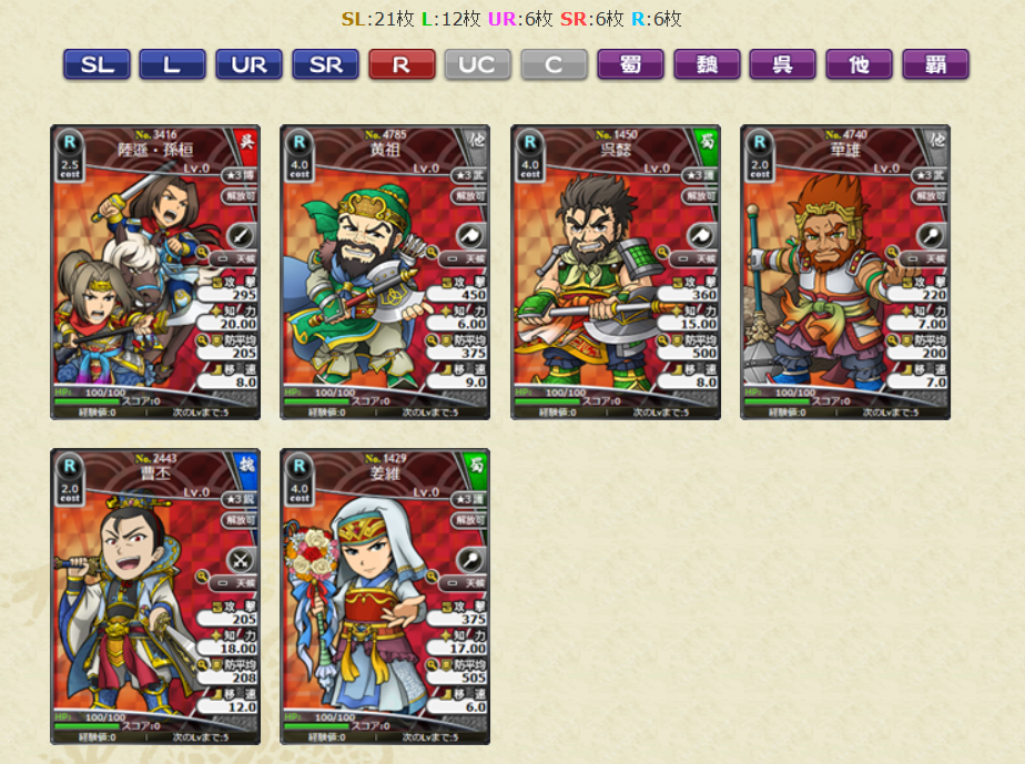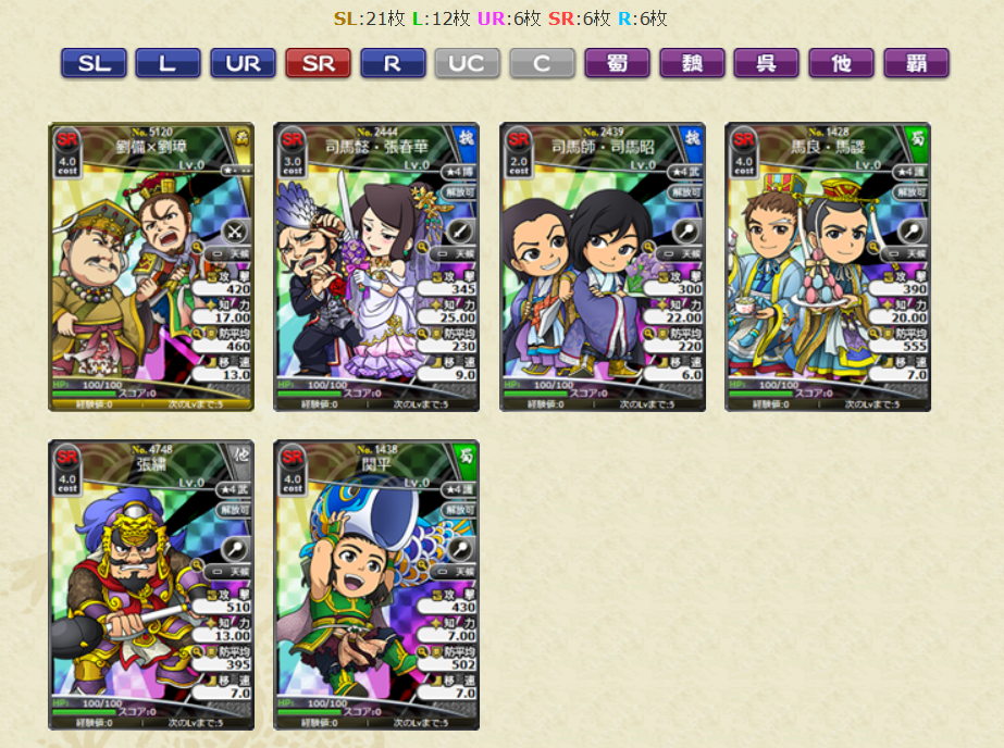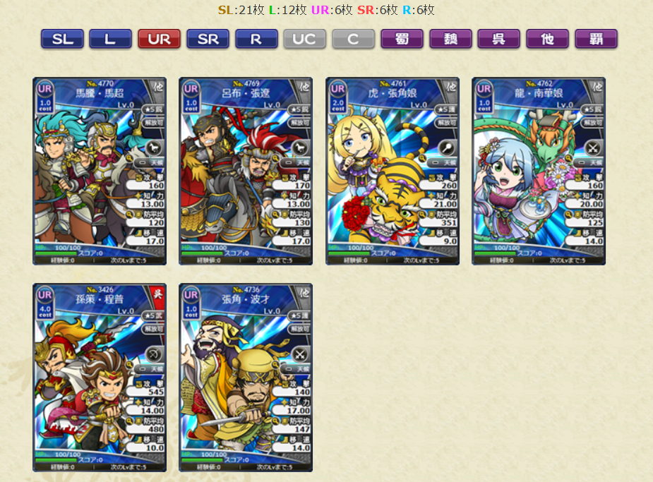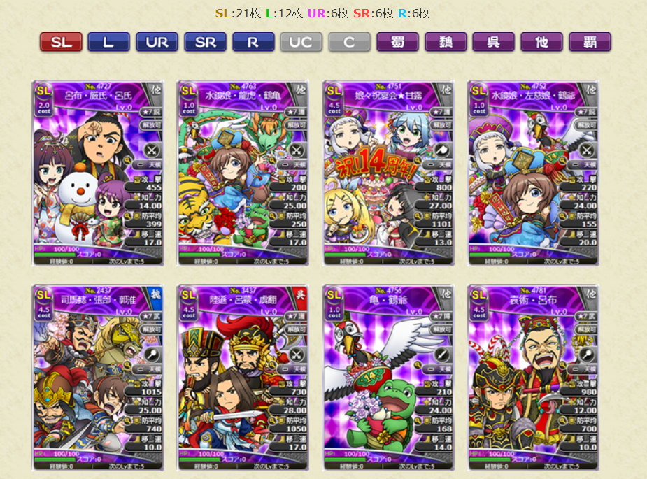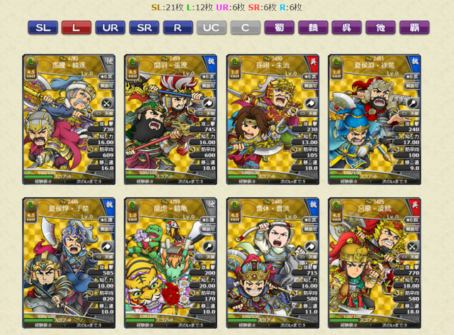 「No.4727 SL呂布・厳氏・呂氏」を含むレアリティSL、Lのカードと