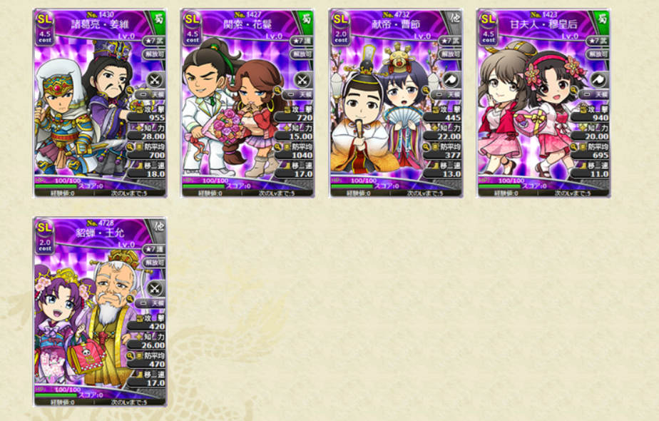祝宴の帝明鏡LV41枚 ・No.2437 SL司馬懿・張郃・郭淮 天帝檄令LV2 / 龍神檄令LV5 / 鬼神檄令LV8 1枚 ・No.4781 SL袁術・呂布 帝軍の王威令LV7 / 主将の帝明鏡LV10 1枚 ・No.4772 SL張角娘・黒虎 荒天の娘帝撃LV7 / 聖獣の帝明鏡LV10 1枚 ・No.4782 L馬騰・韓遂 天軍の王威令LV6 / 主将の天明鏡LV10 1枚 ・No.3430 L孫翊・朱治 剴切の荒天撃LV4 / 主将の天明鏡LV10 1枚 ・No.4759 L龍虎・鶴亀 剴切の天神攻令LV7 / 聖獣の天明鏡LV7 1枚 ・No.3424 L孫氏・陸遜 四神の大聖郭LV4 / 主将の天明鏡LV10 1枚 ・No.3413 L大虎・小虎 剴切の天砕器LV1 / 主将の天明鏡LV10 1枚 ・2025クーポン 5枚 ブラウザ三国志のゲーム画面より引用