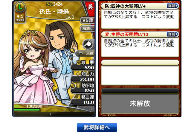 「天帝の守勢LV4」「上帝の守勢LV4」「主将の帝明鏡LV10」を所持した