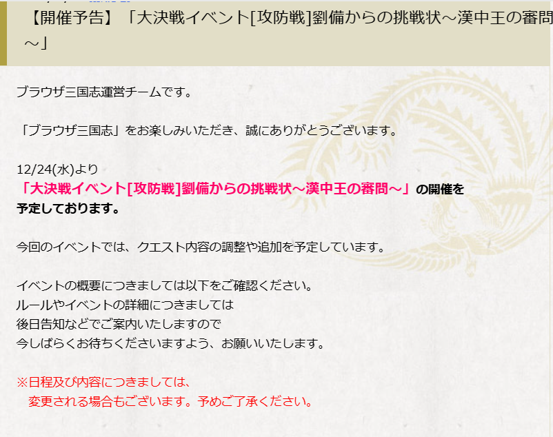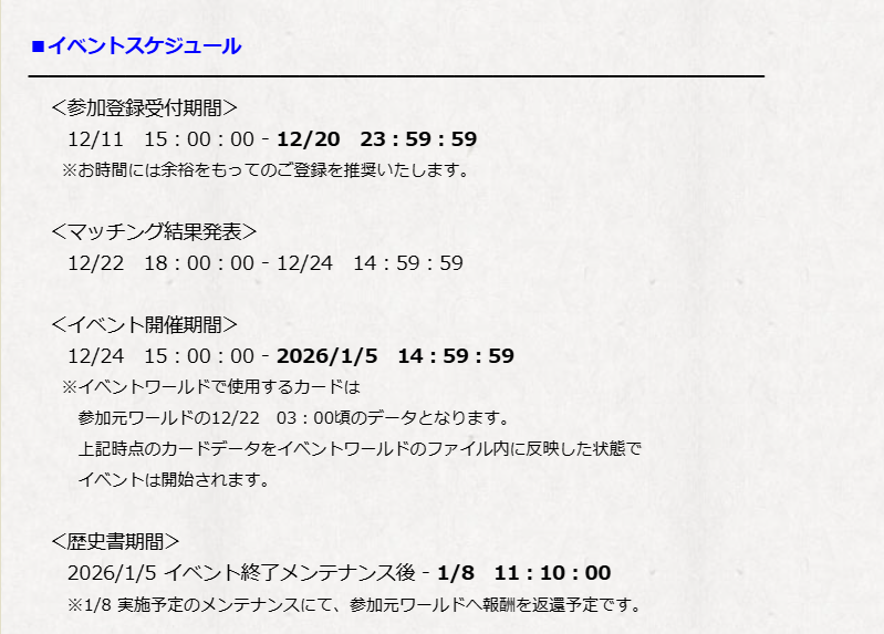 攻防戦の開催期間が12月24日の15時から来年の1月5日の14時59分まで(去年は12月26日から1月8日まででした)。