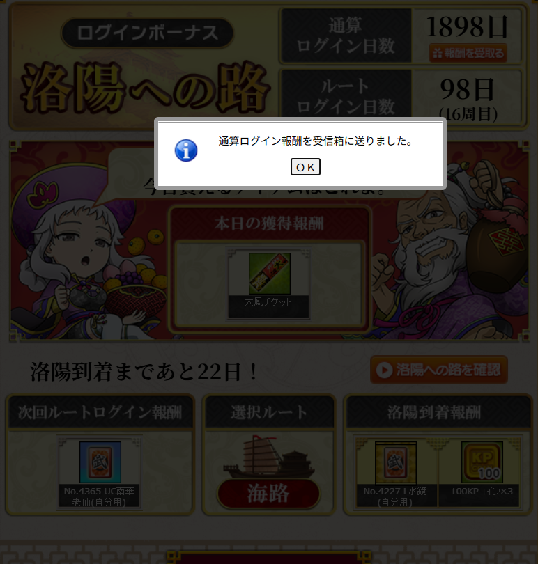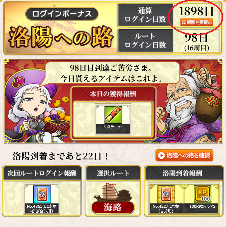 洛陽の路実装後1日も忘れずログインしてる毎日ログイン勢のみなさん。