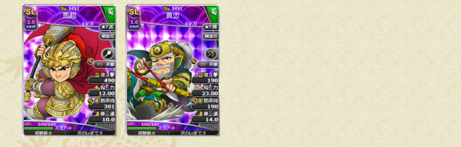 ※レアリティR以下の武将のスキルレベルは初期所持スキルLVの状態で排出されます。