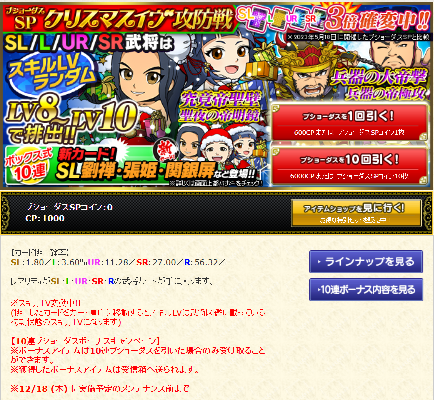 ブショーダスSP【クリスマスイヴ攻防戦】の10連ボーナスの