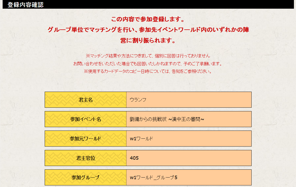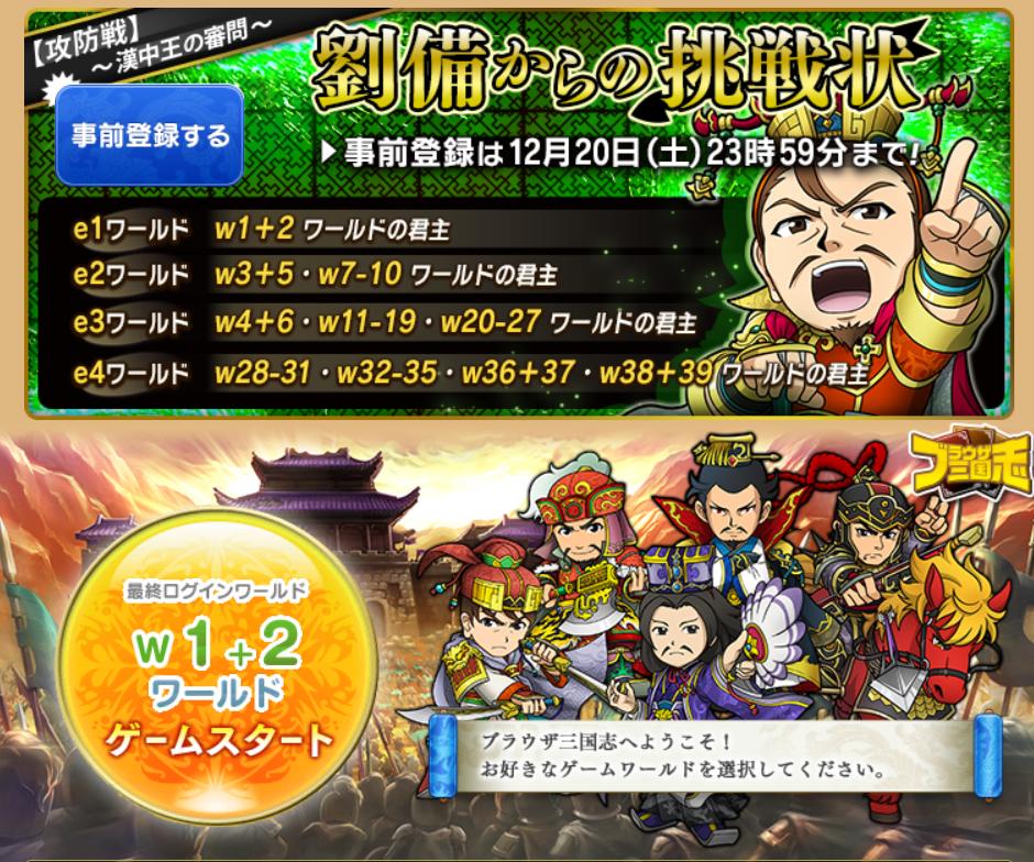 現在参加登録中の攻防戦「劉備からの挑戦状」。