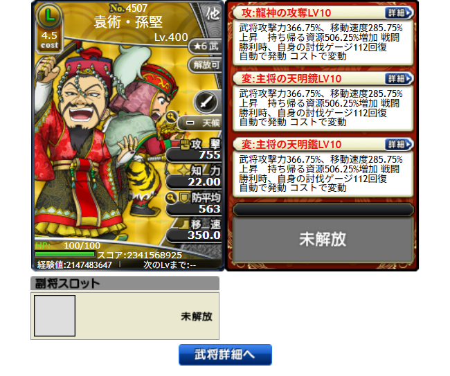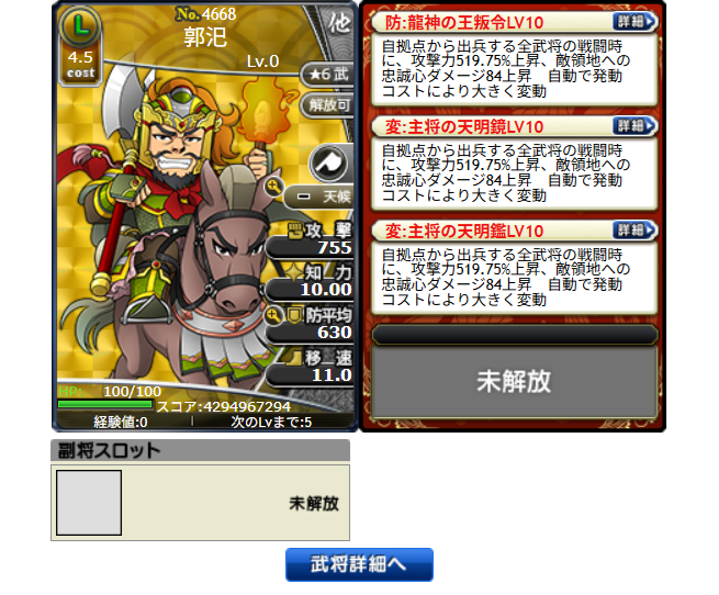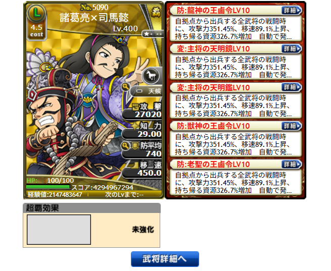 スキルはオール10で実質的に龍神の王鹵令×5。
