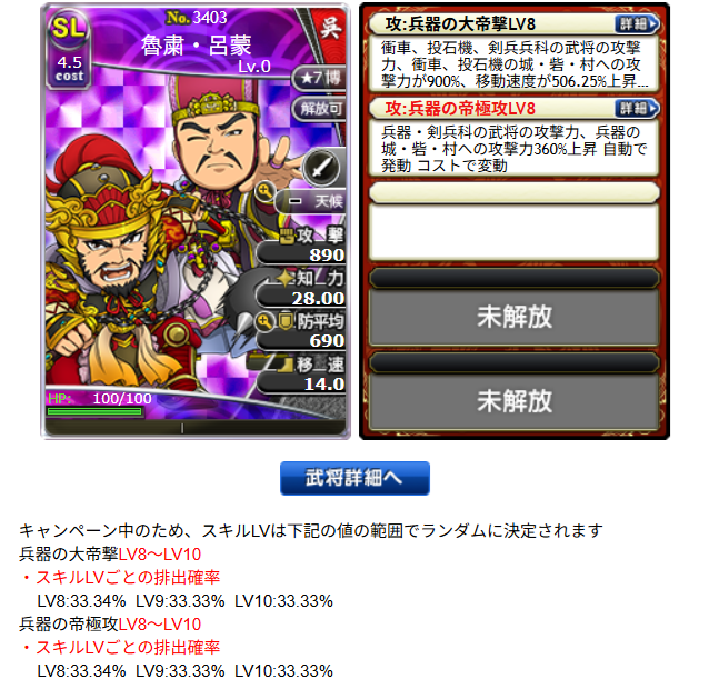 このカード自体は2022年11月のSP兵器で実装されており、初期スキルの2つをレベル10まで上げれば拠点への攻撃力が1818%上昇となるようです。
