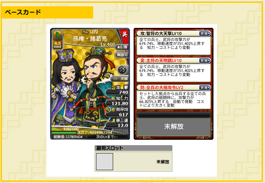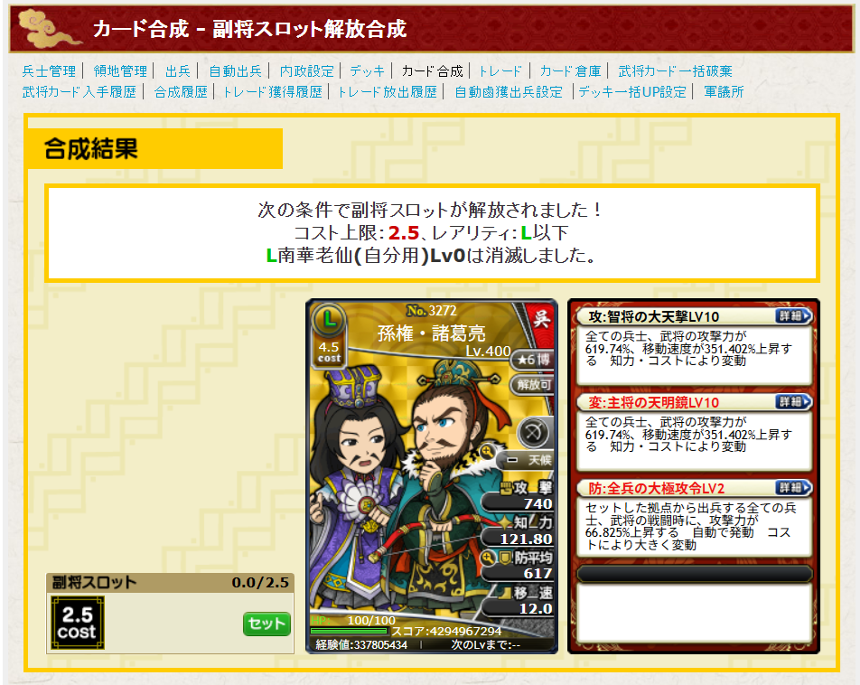 まずは100%成功の副将開放。