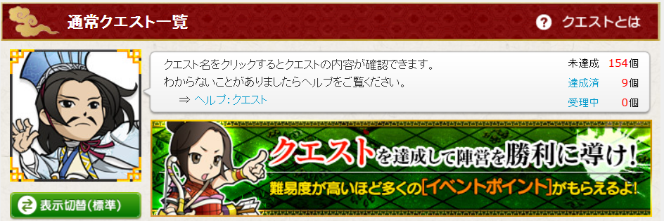 「大決戦イベント[攻防戦]法正からの挑戦状」のクエを確認