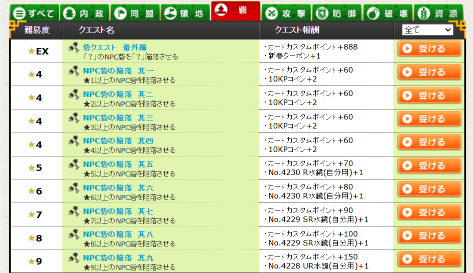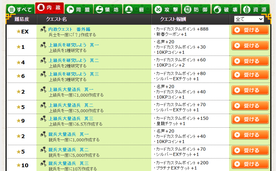 内政クエ一覧