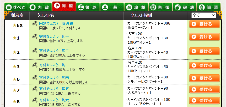 同盟クエ一覧