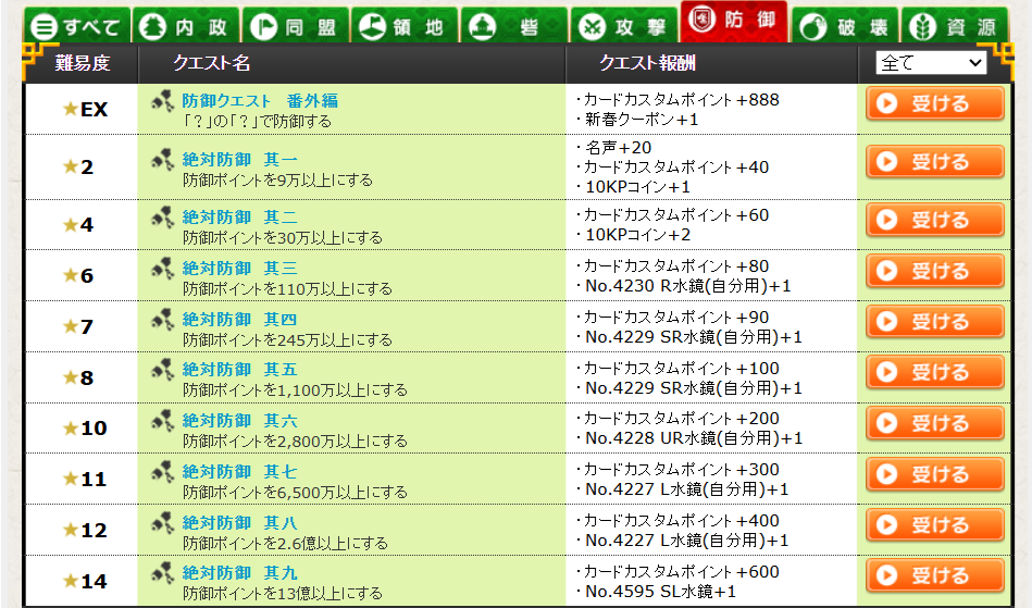 防御クエ一覧