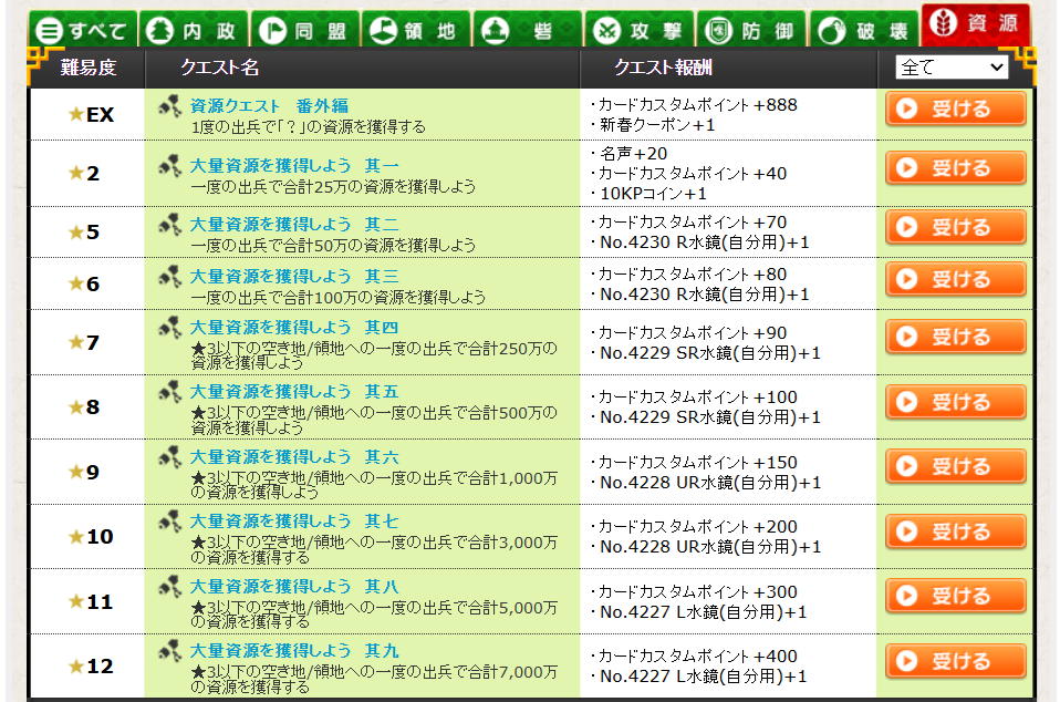 資源クエ一覧