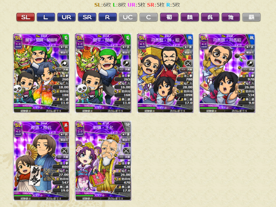 - SLはお正月に実装されたカードなどがラインナップ