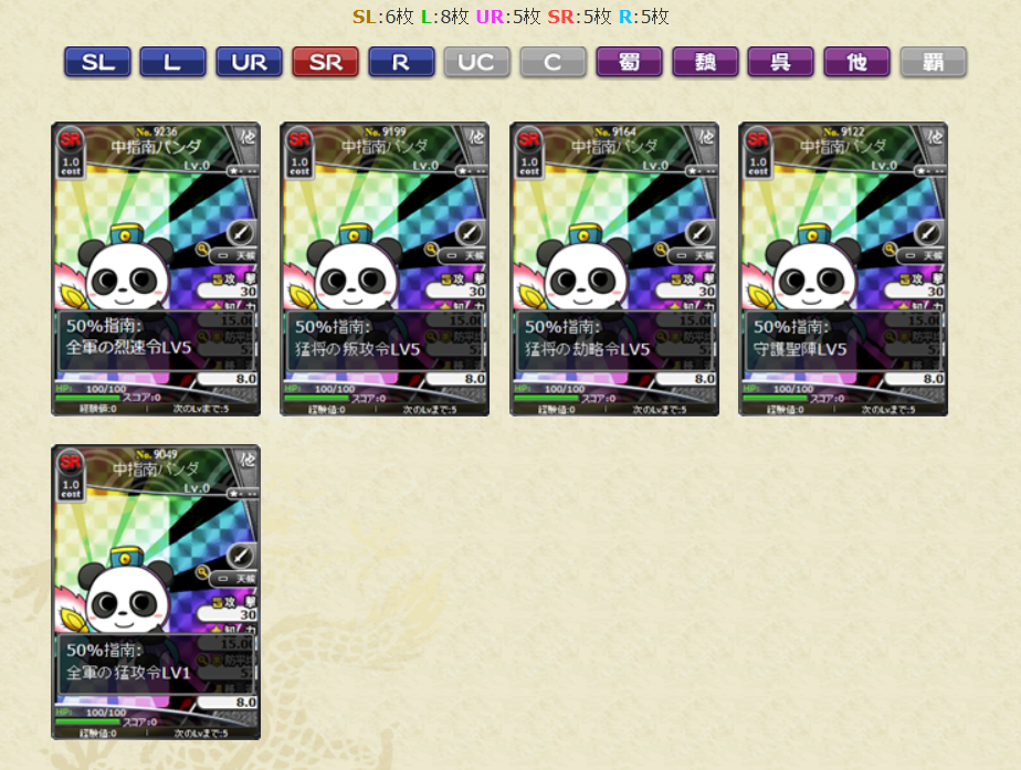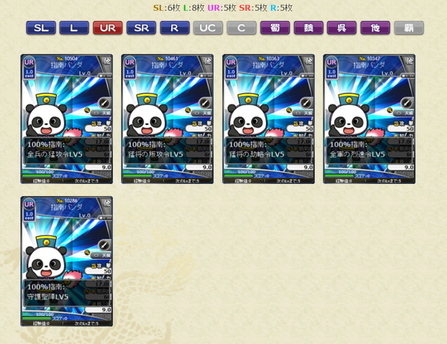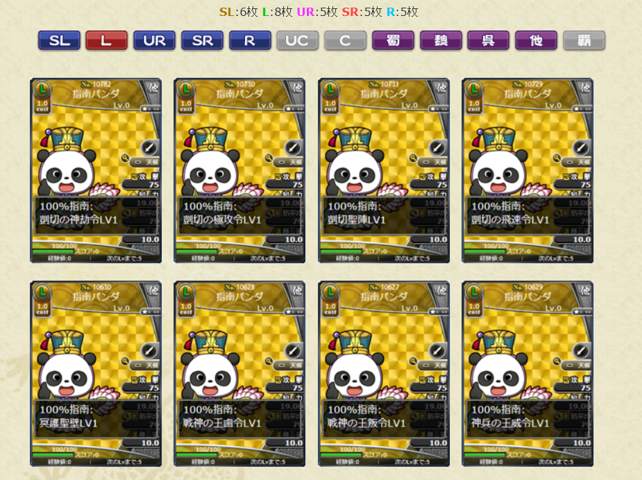 SLがお正月関連のカードで、L以下はパンダという仕様となっております。