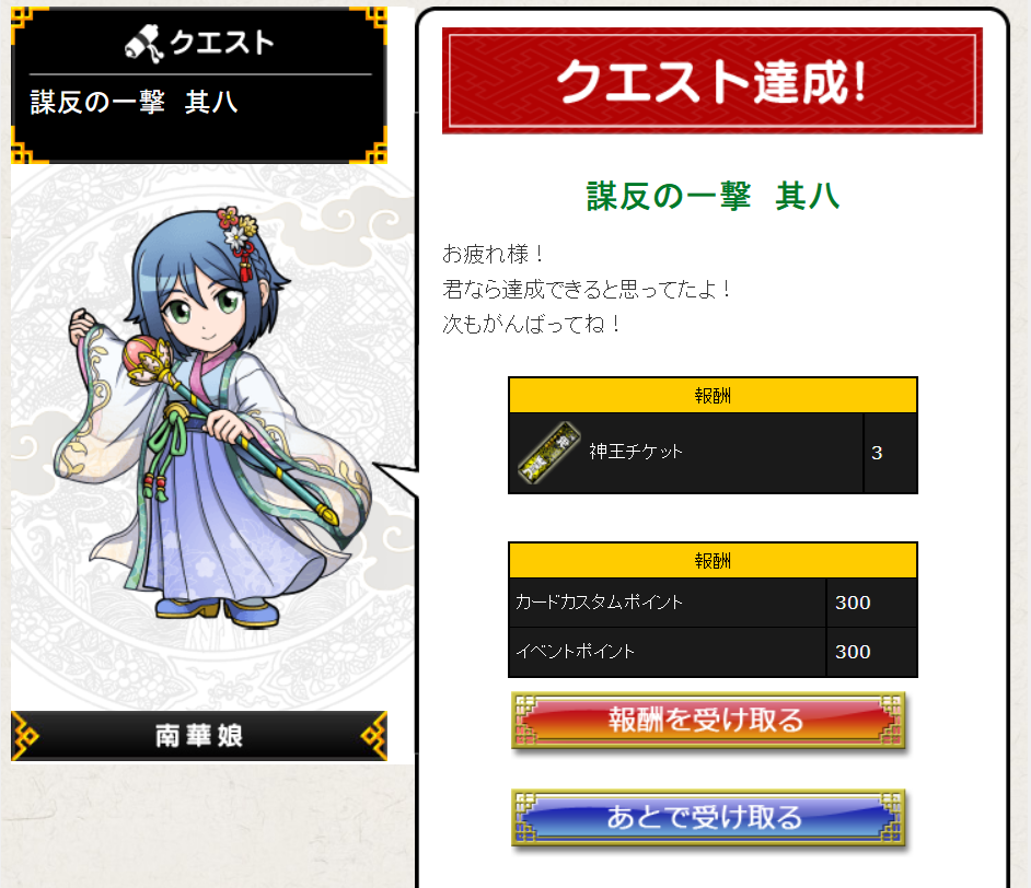 高難易度のクエもいくつかクリアできて満足ですわ。
