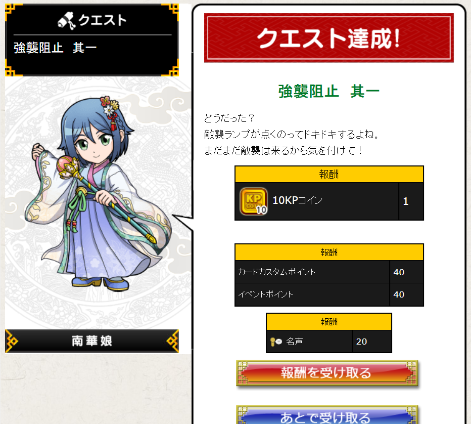 それでは2日目のクエのクリア状況がこちら。