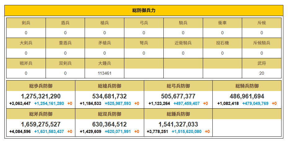 錘兵込みで5億から16億ぐらいの防御力を出せます。